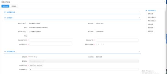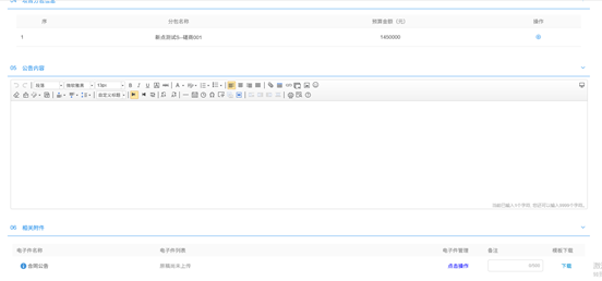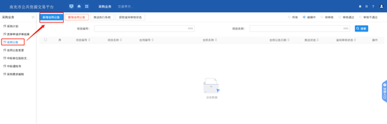 1、菜單中,點(diǎn)擊【采購(gòu)業(yè)務(wù)】—【合同公告】進(jìn)入新增合同公告頁(yè)面,如下圖: