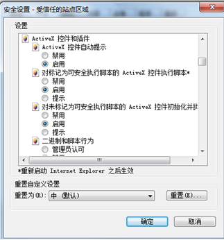 會(huì)出現(xiàn)一個(gè)窗口,把其中的Activex控件和插件的設(shè)置全部改為啟用。