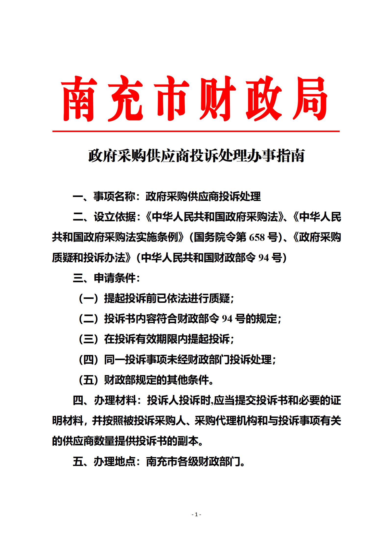 南充市政府采購(gòu)供應(yīng)商投訴處理辦事指南