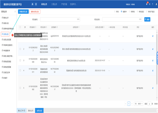 采購單位需以交易甲方身份登陸系統(tǒng),然后進入采購業(yè)務合同公告中里新增在線合同,如下圖: