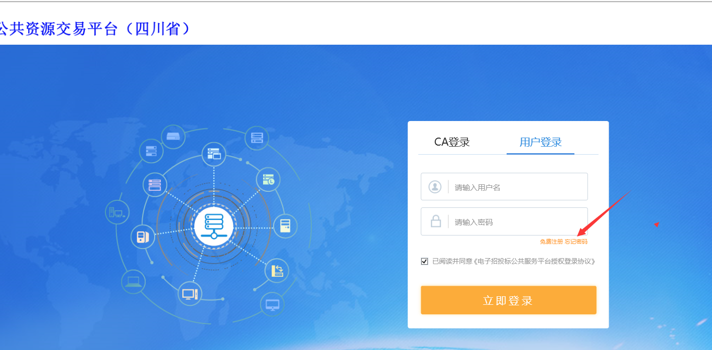 1、請?jiān)L問地址http://ggzyjy.sc.gov.cn/PSPSSO/login/oauth2login,登錄四川省統(tǒng)一認(rèn)證平臺(tái),點(diǎn)擊登錄頁面【忘記密碼】按鈕。